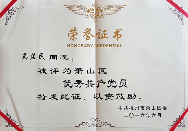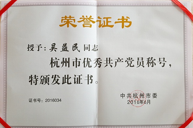 在庆祝中国共产党成立95周年之际,beat365密封党的建设又传喜讯。我司常务副总经理兼总工程师吴益民同志获得了中共杭州市委、中共萧山区委两级“优秀共产党员”表彰。