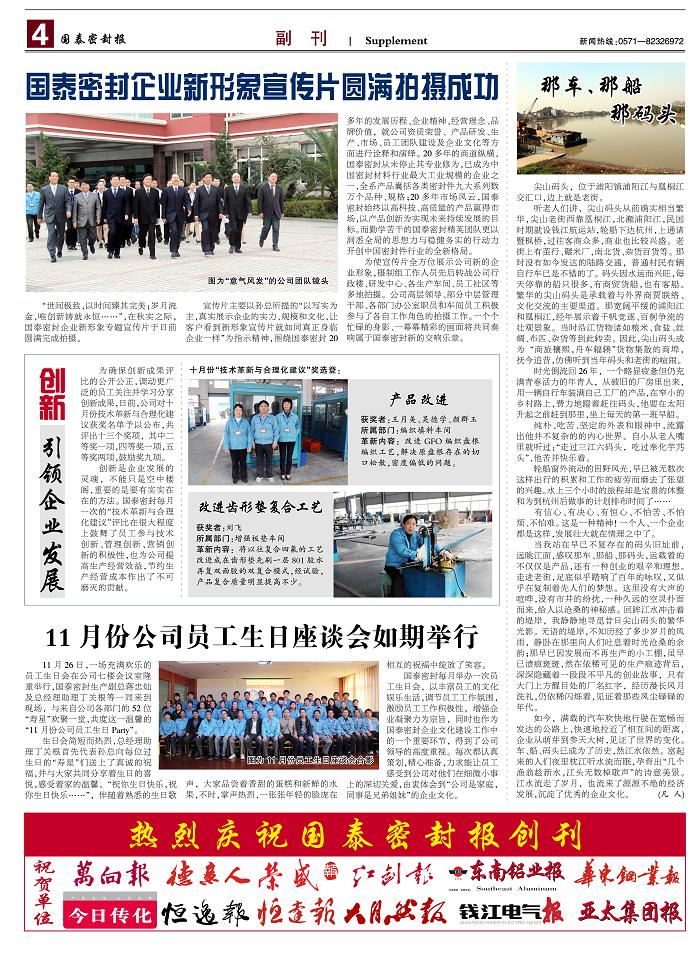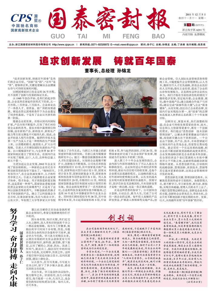经过近一个月时间紧锣密鼓的筹备,公司企业报《beat365密封报》创刊号于2011年12月6日正式出版发行。