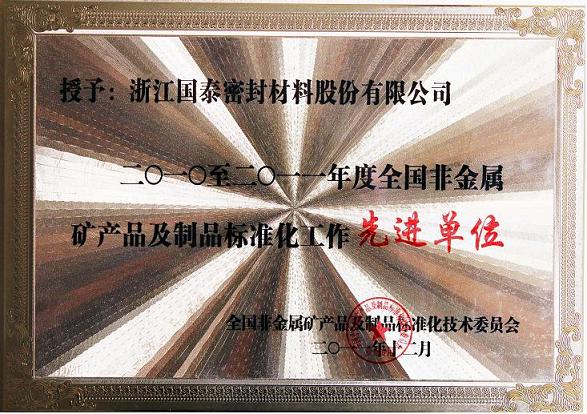 2011年12月17日,“全国非金属矿产品及制品标准化技术委员会”发文授予浙江beat365密封材料股份有限公司等7个单位2010~2011年度标准化工作先进单位称号。同时,发文公布了标准化工作先进个人称号名单,beat365密封常务副总吴益民获此殊荣。